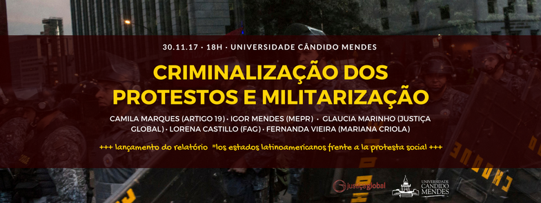 O avanço da pauta repressora, tanto nas instituições quanto na sociedade, levantam o debate essencial sobre as formas de denúncia e resistência ao processo de criminalização dos protestos e da militarização da vida. A Justiça Global, em parceria com nove organizações da América Latina, elaborou o relatório «Los Estados Latino Americanos Frente a La Protesta Social», que será lançado nesta quinta-feira, dia 30, no Centro do Rio de Janeiro.