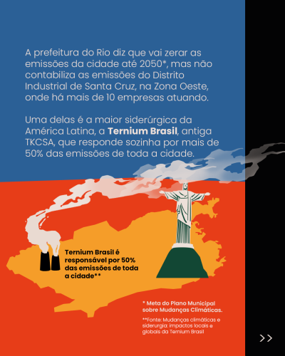 O relatório “Mudanças climáticas e siderurgia – Impactos locais e globais da Ternium Brasil”, publicado no ano passado pelo Instituto Políticas Alternativas para o Cone Sul (Pacs), revelou que, sozinha, a siderúrgica é responsável por mais de metade das emissões de GEE de todo o município, que tem mais de seis milhões de habitantes.