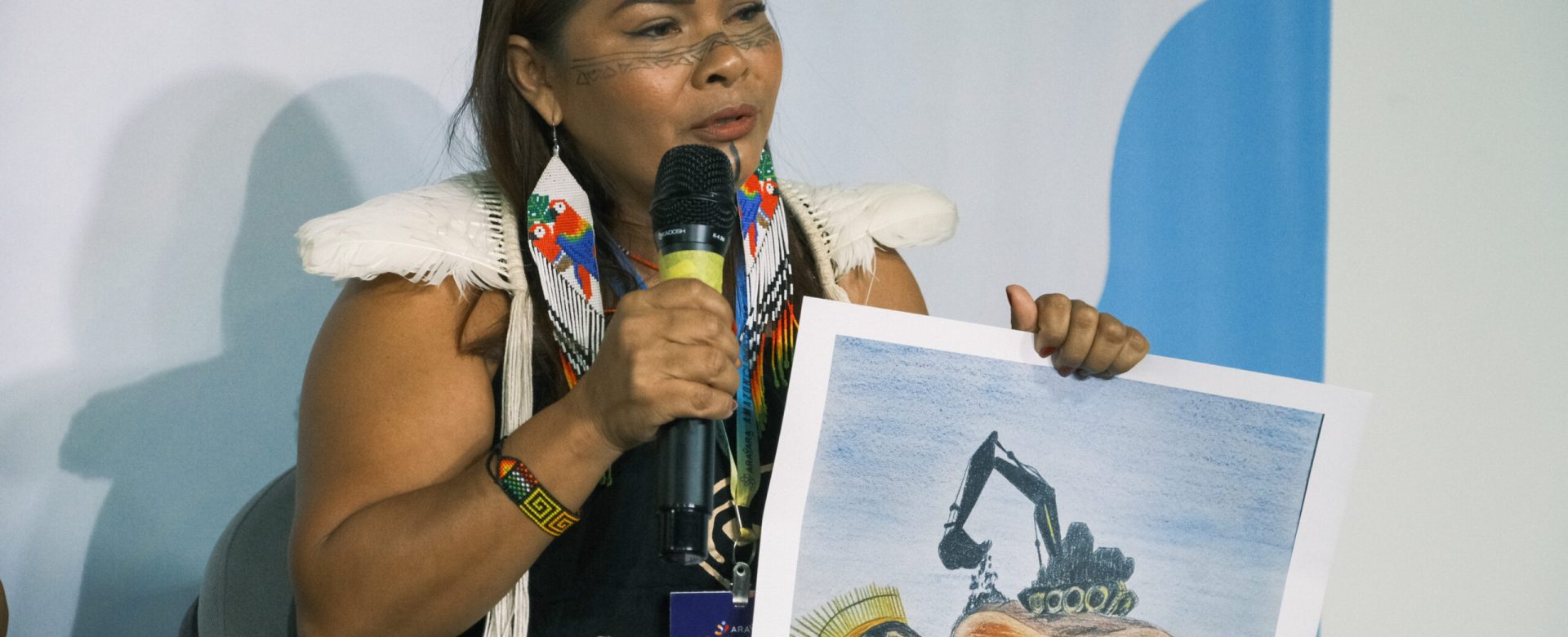 Milena Mura, coordenadora da Organização das Mulheres Indígenas Mura (OMI), trouxe o grito das mulheres de Autazes contra o Projeto Potássio Autazes: “quando uma mineradora chega, ela chega para destruir. O que chamam de desenvolvimento é a morte das mulheres, das crianças e das futuras gerações. Nosso território é a nossa casa, é o nosso corpo. E pela nossa casa nós vamos lutar até a última gota de sangue Mura”.